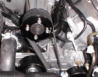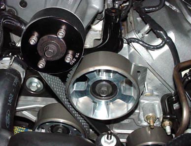 These units are available with a 100mm Billet Aluminum Pulley. You will experience the "Best Belt Wrap" under Wide Open Throttle that your '03 Mustang Cobra deserves. These Idler Bracket Pulley Kits are Available with "Double Bearings" The Truth About Idler Pulleys Check out the Before and After pictures below!! BEFORE: